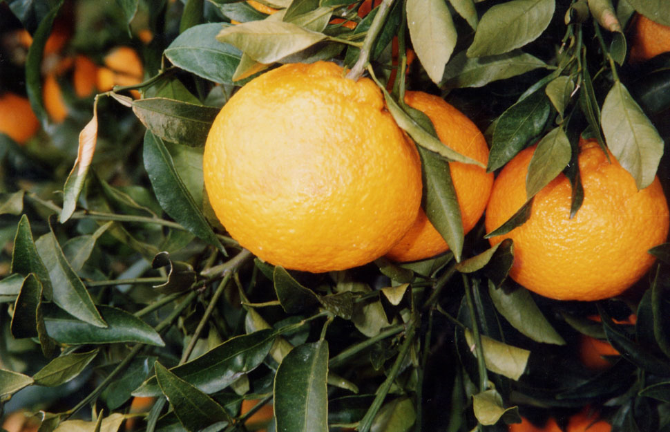 この品種は、「不知火」に「マーコット」を交配して得られた珠心胚実生の中から選抜、育成されたものであり、果形が球、果実の大きさが重、果皮色が橙の育成地(熊本県下益城郡松橋町)では1月下旬~2月上旬に成熟するかんきつである。樹姿はやや直立、樹の大きさは大、樹勢は強である。枝梢の太さは太、節間長はやや長、枝梢のとげの多少は多である。葉身の形は披針形、波状の程度は弱、大きさ、葉身長及び葉身幅は中、網脈の鮮明度はやや明瞭である。翼葉の形は楔形、葉柄の長さは中、太さは太である。花序の形成は単生、花(花蕾)の重さは軽、花弁の形は紡錘形、長さはやや短、幅はやや広、色は白、数は5枚、花糸の分離の程度は分離、花粉の多少は少である。果実の形は球、果形指数は小、果頂部の形は平坦、放射条溝の有無は有、凹環の有無は無、果梗部の形は高カラー凹、放射条溝の多少は多である。果心の充実度は空、大きさは大、果実の重さは重、果皮の色は橙、油胞の大きさは小、密度は疎、凹凸は凸、果面の粗滑はやや粗、果皮の厚さは中、果皮歩合は小、剥皮の難易は易である。じょうのう膜の硬さは軟、さじょうの形及び大きさは中、色は橙である。果汁の多少は多、甘味は高、酸味及び香気の多少は中、種子数は少、胚の数は多胚である。発芽期及び開花期はやや晩、成熟期は早で育成地においては1月下旬~2月上旬である。隔年結果性は中、浮皮果の発生は少、裂果の発生は無、貯蔵性は長である。「不知火」と比較して、樹が大きいこと、樹勢が強いこと等で、「はるみ」と比較して、樹が大きいこと、樹勢が強いこと、枝梢のとげが多いこと、翼葉の形が楔形であること等で区別性が認められる。 |