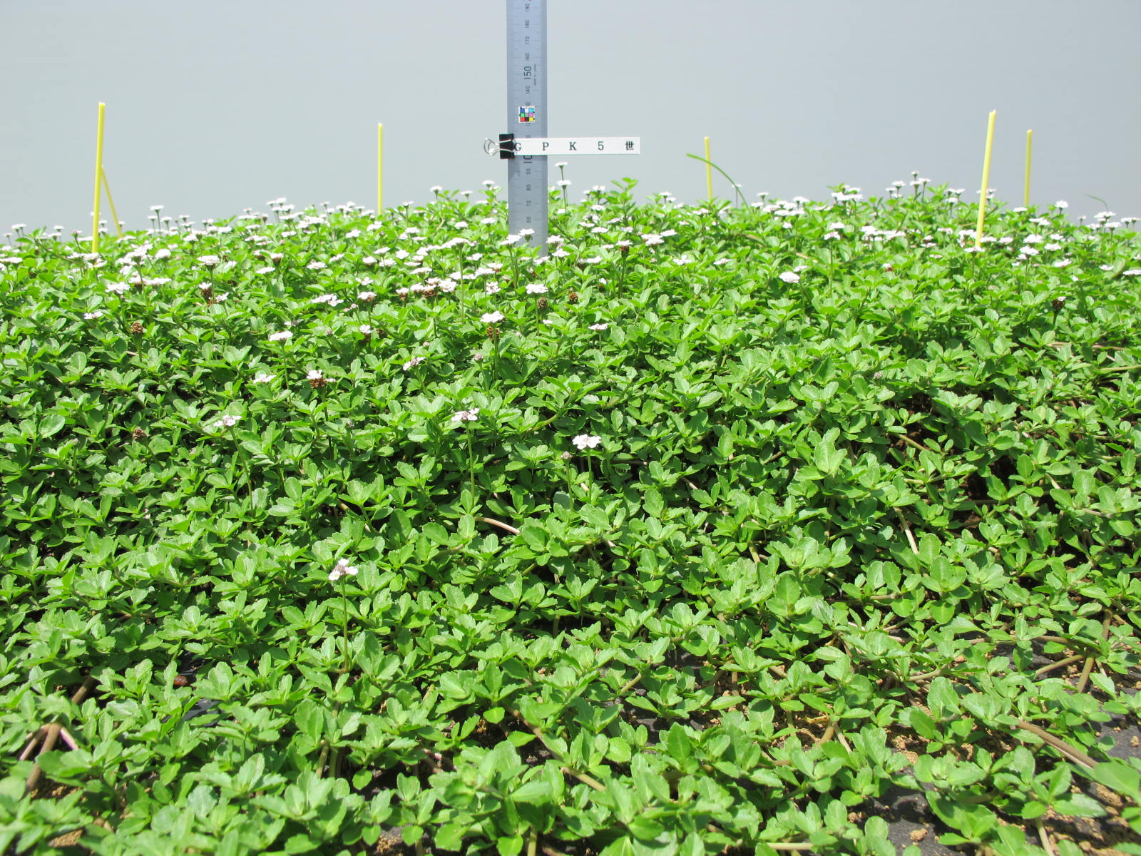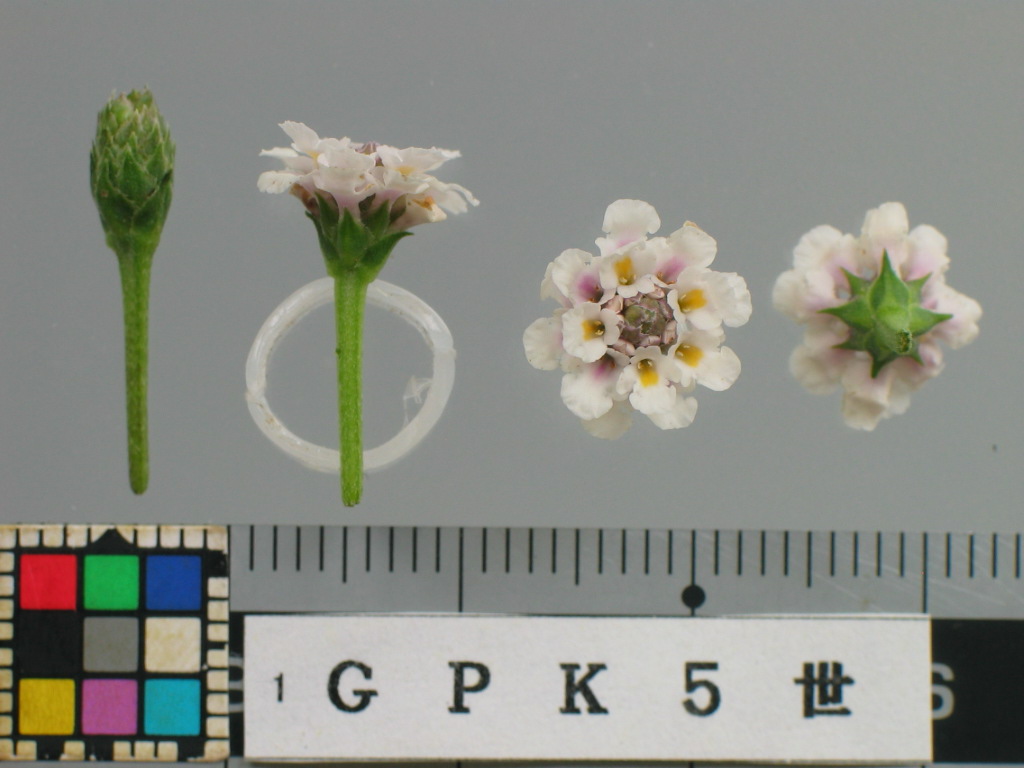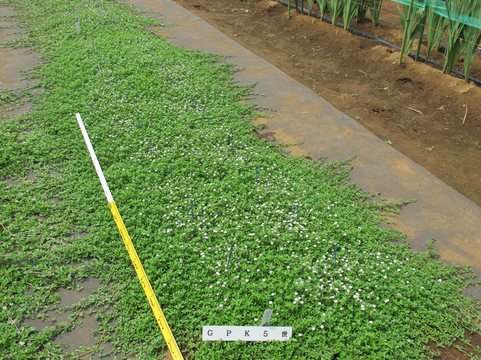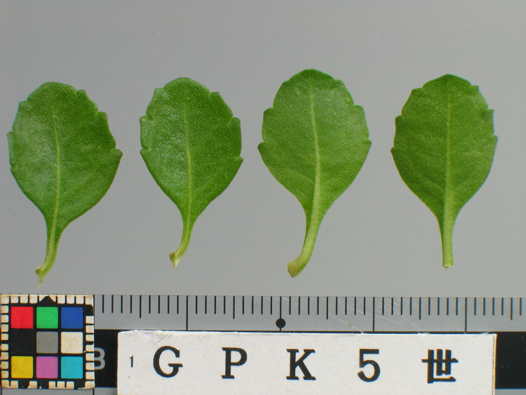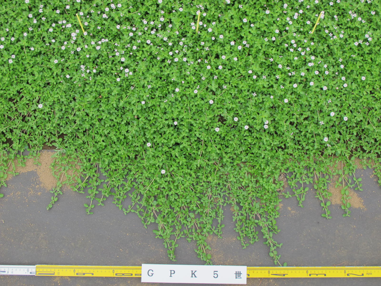 草型は匍匐性、草丈はやや低、茎の色は緑褐、茎の毛の多少は中、分枝性は密、節間長はやや長、葉序は対生、葉全体の形は楕円形、葉先端の形は鈍形、葉基部の形は鈍形、葉身長は中、葉身幅は中、葉表面の色は緑、斑の有無は無、葉の毛の多少は無、花房の形は円錐状、花房の大きさは中、花房の高さは中、花房の向きは上向き、花形は一重咲、花径は中、花色はN155B,12A(花冠中央)、花柄の長さはやや短、花数は中、花の香りは有、開花期は中である。(カラーチャートはRHSを使用) 出願品種「GPK5世」は、対照品種「Sヒトシ3世」と比較して、葉全体の形が楕円形であること、葉基部の形が鈍形であること等で区別性が認められる。