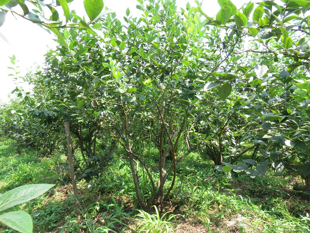 樹勢は中、樹の大きさは中、樹姿は斜上、前年枝の色は赤褐、前年枝の長さはやや短、前年枝の節間長は中、葉の長さは中、葉の幅は中、葉の長さ/幅は中、葉の形は楕円、葉の先端部の形は鋭、葉の表面の色は緑、葉の表面の緑色の濃淡(葉が緑色の品種に限る)は中、葉の周縁の型は全縁、花芽のアントシアニン着色の強弱は中、花序の長さはやや短、花冠の形はつぼ、花冠の色は白、花筒の大きさは中、花筒のアントシアニン着色の強弱は弱、花筒の稜の有無は有、果房の着生密度は中、未熟果の緑色の濃淡は中、果実の大きさは大、果実の縦断面の形は扁円、果柄痕の大きさは中、がくあの形は円、がく片の向きは斜上、がく片の反り方は内曲、がくあの直径はやや小、がくあの深さは中、果粉の程度は強、果皮の色は濃青、果実の硬さは中、果肉の色は淡緑、糖度は高、酸度はやや高、着果習性は前年枝のみ、裂果性は少、ほう芽期は中、前年枝の開花始期は中、前年枝の果実の成熟期は中、収穫期間は長である。
