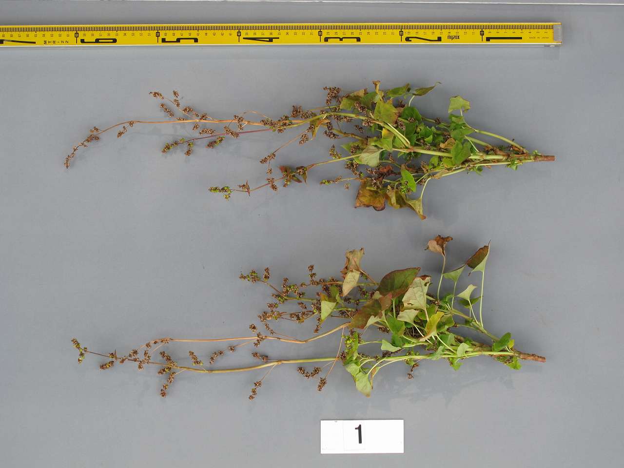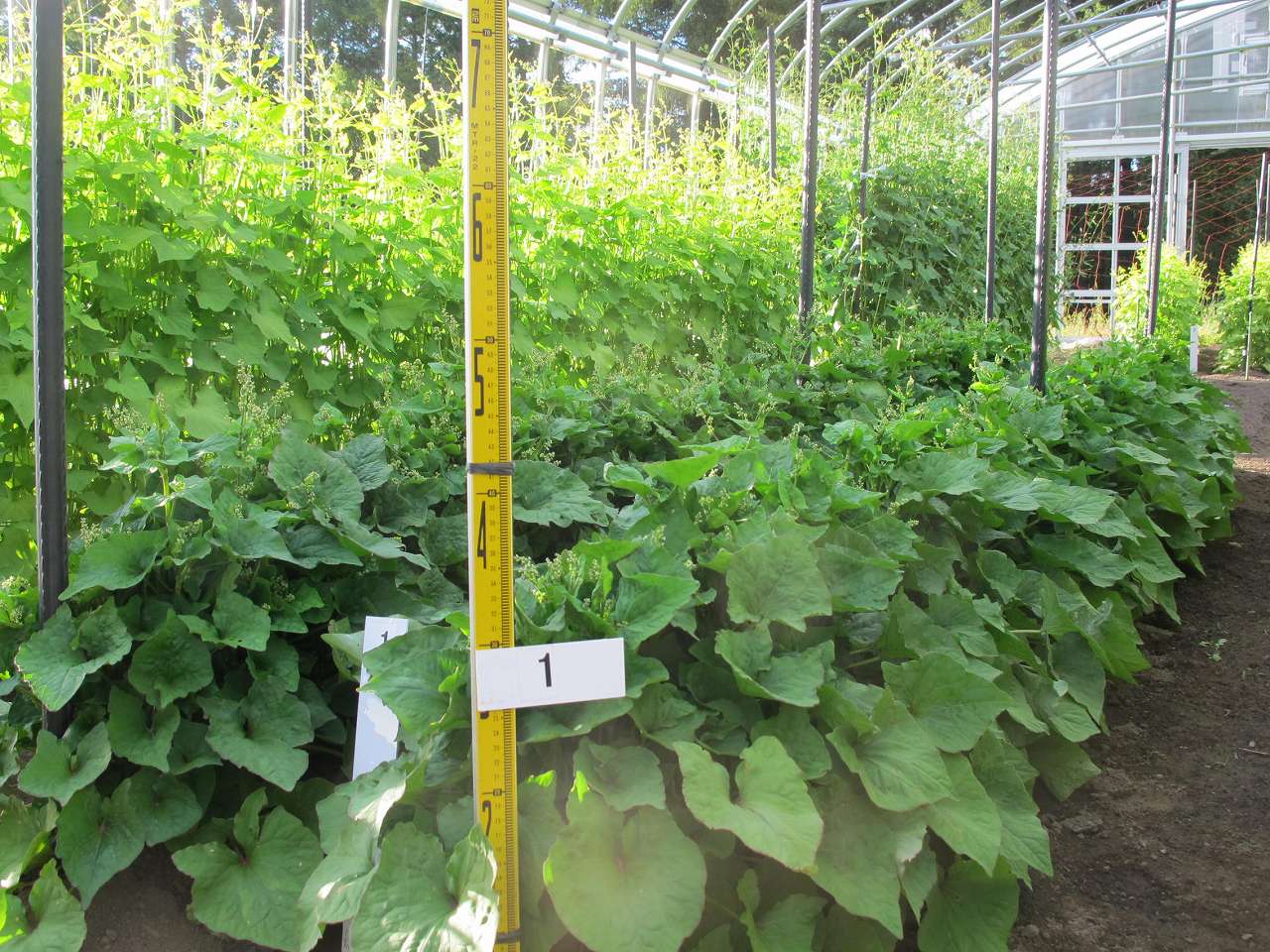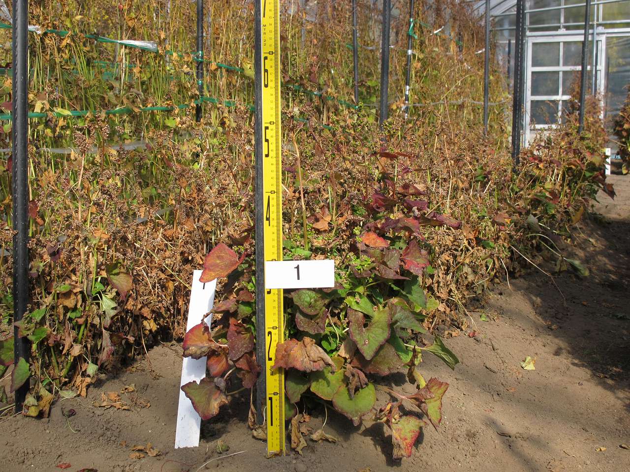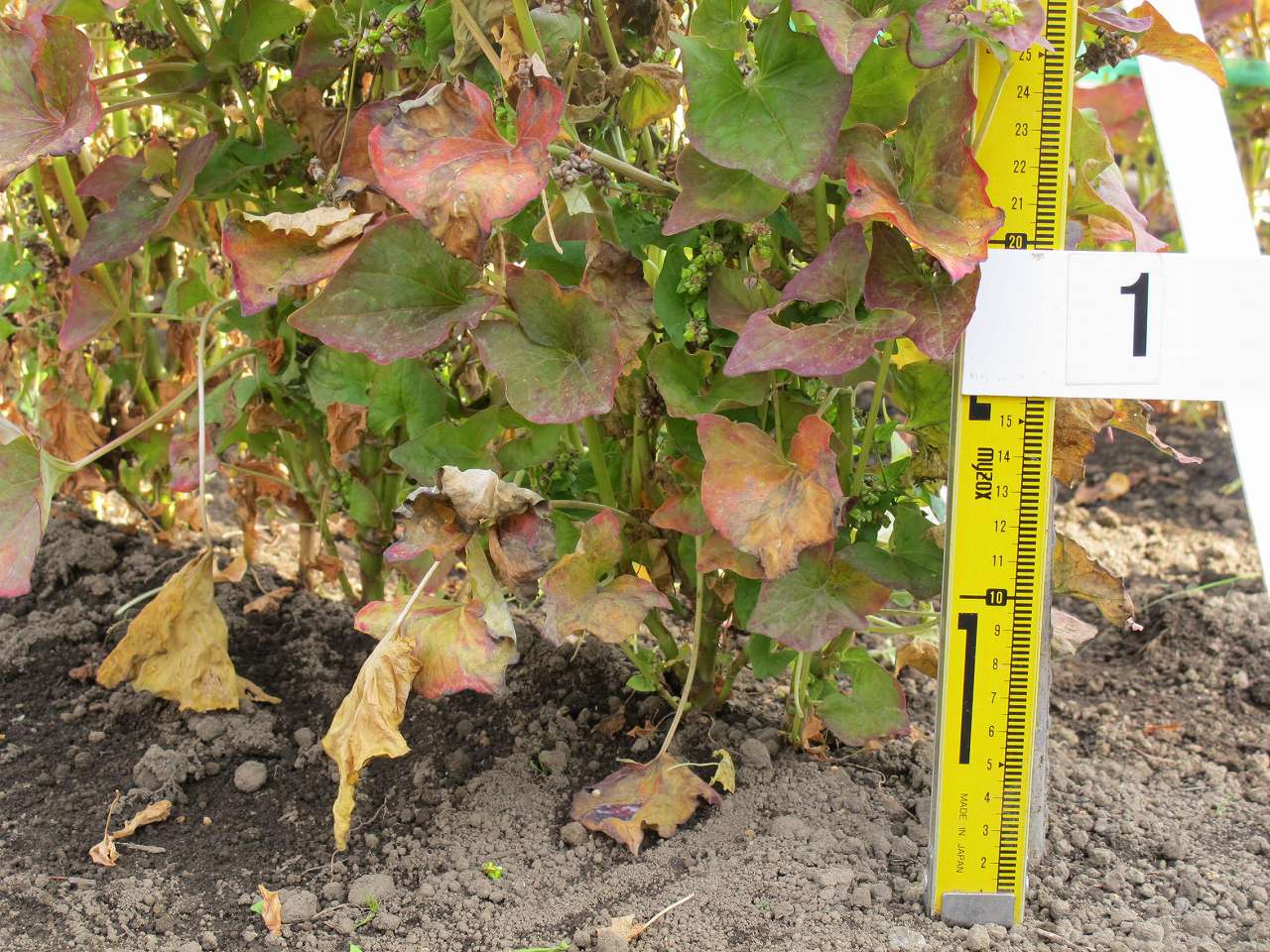 出願品種「ダルマだったん」は、対照品種「北海T8号」と比較して、草丈が極短であること等で区別性が認められる。
